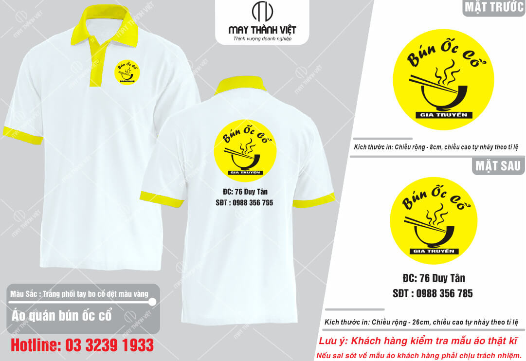 • Miễn phí thiết kế theo yêu cầu khi cọc làm. Bảo hành áo 1 năm;